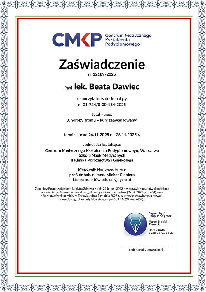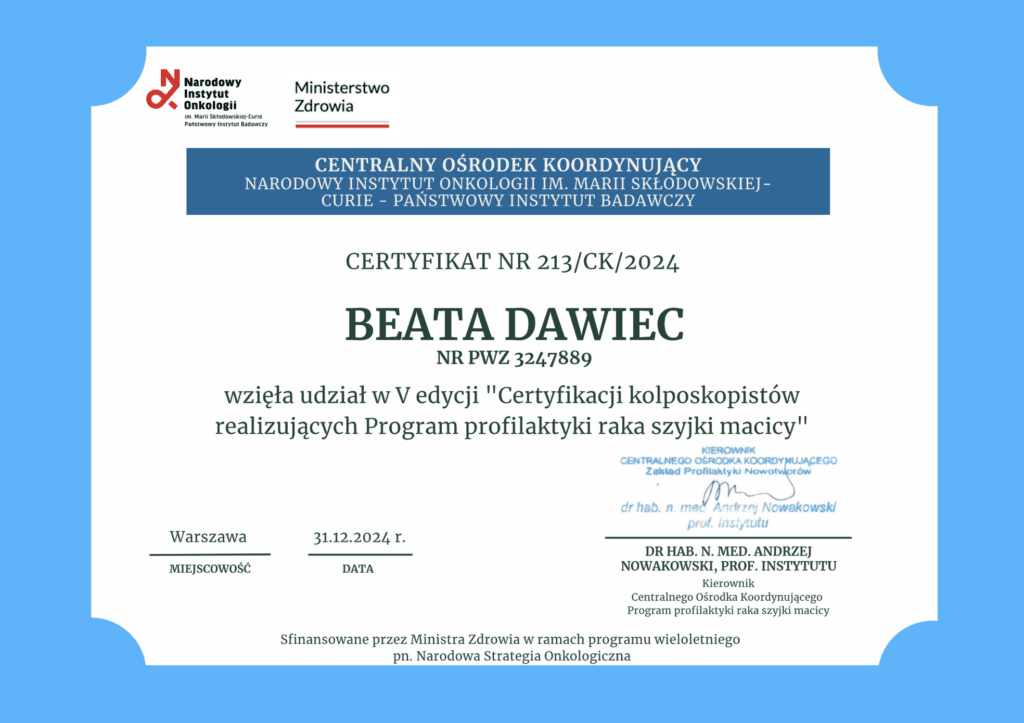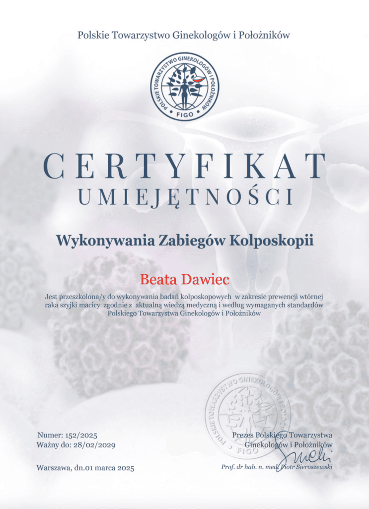 Miałam swoją pierwszą wizytę ginekologiczną u Pani Doktor i jestem bardzo zadowolona. Czułam się komfortowo. Pani doktor dokładnie wszystko tłumaczy. Pacjentka w jej gabinecie czuje się zaopiekowana. Miła i ciepła osoba, która odpowiada na pytania i doradza w razie potrzeby.
