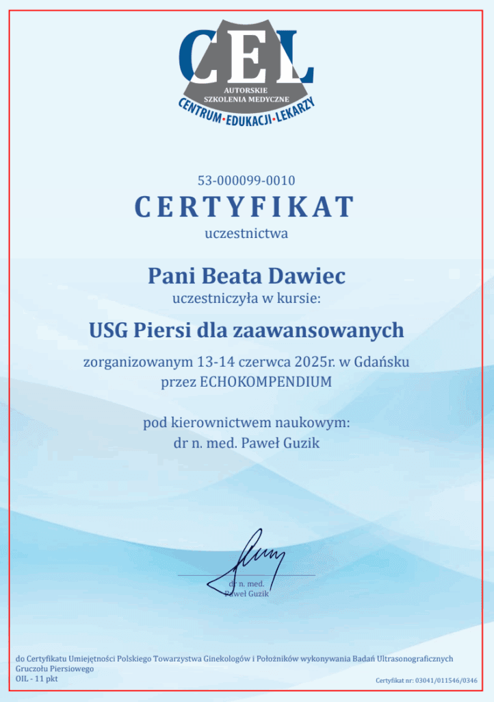 Bardzo przyjemna wizyta. Pani ginekolog sympatyczna, szczegółowo wyjaśniająca zakres badania, miła. Wyszłam bardzo zadowolona z wizyty, polecam serdecznie
