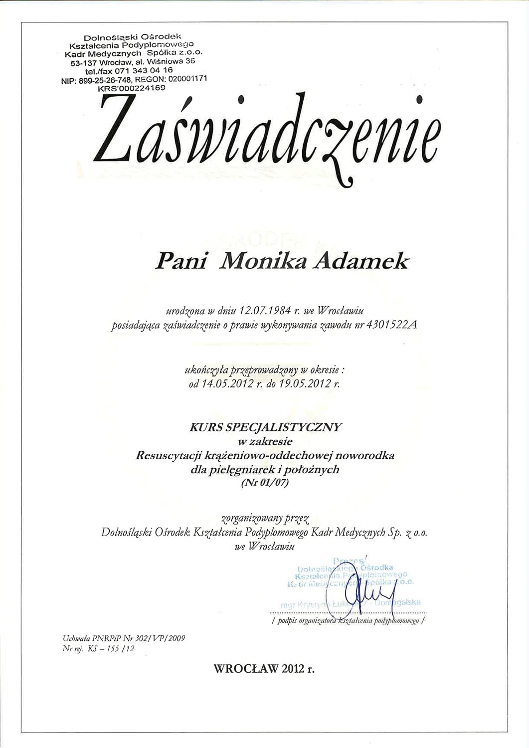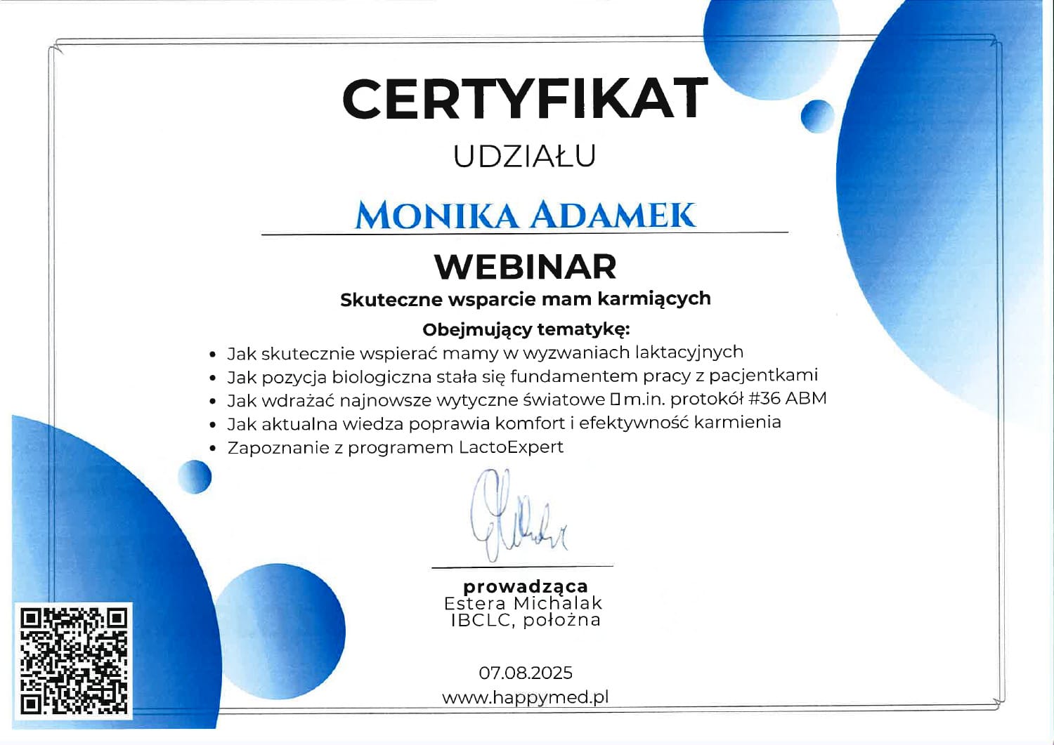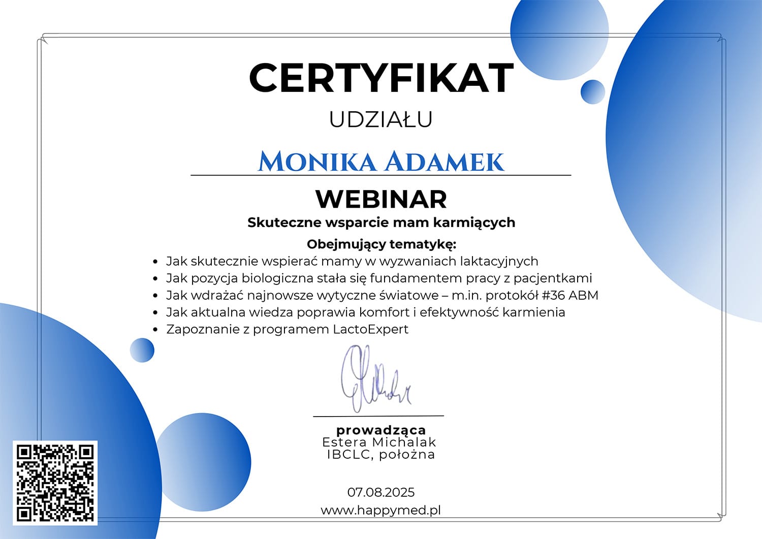 Monika Adamek – położna koordynująca, magister położnictwa, Certyfikowany Doradca Laktacyjny