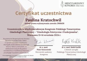 Doktor Paulina Kratochwil zajmuje się profilaktyką, diagnostyką i leczeniem chorób ginekologicznych oraz położnictwem. W Centrum FemiMea Pani Doktor prowadzi ciąże oraz wykonuje badania prenatalne, czyli USG pierwszego trymestru z oceną ryzyka wad genetycznych wg FMF, badania połówkowe oraz USG III trymestru. Dr Kratochwil zajmuję się również poradnictwem antykoncepcyjnym, w tym zakładaniem wkładek wewnątrzmacicznych oraz implantów antykoncepcyjnych. Dr Kratochwil jest członkiem Polskiego Towarzystwa Ginekologii Estetycznej i Rekonstrukcyjnej, a w FemiMea wykonuje zabiegi z zakresu ginekologii estetycznej, w tym zabiegi labioplastyki.